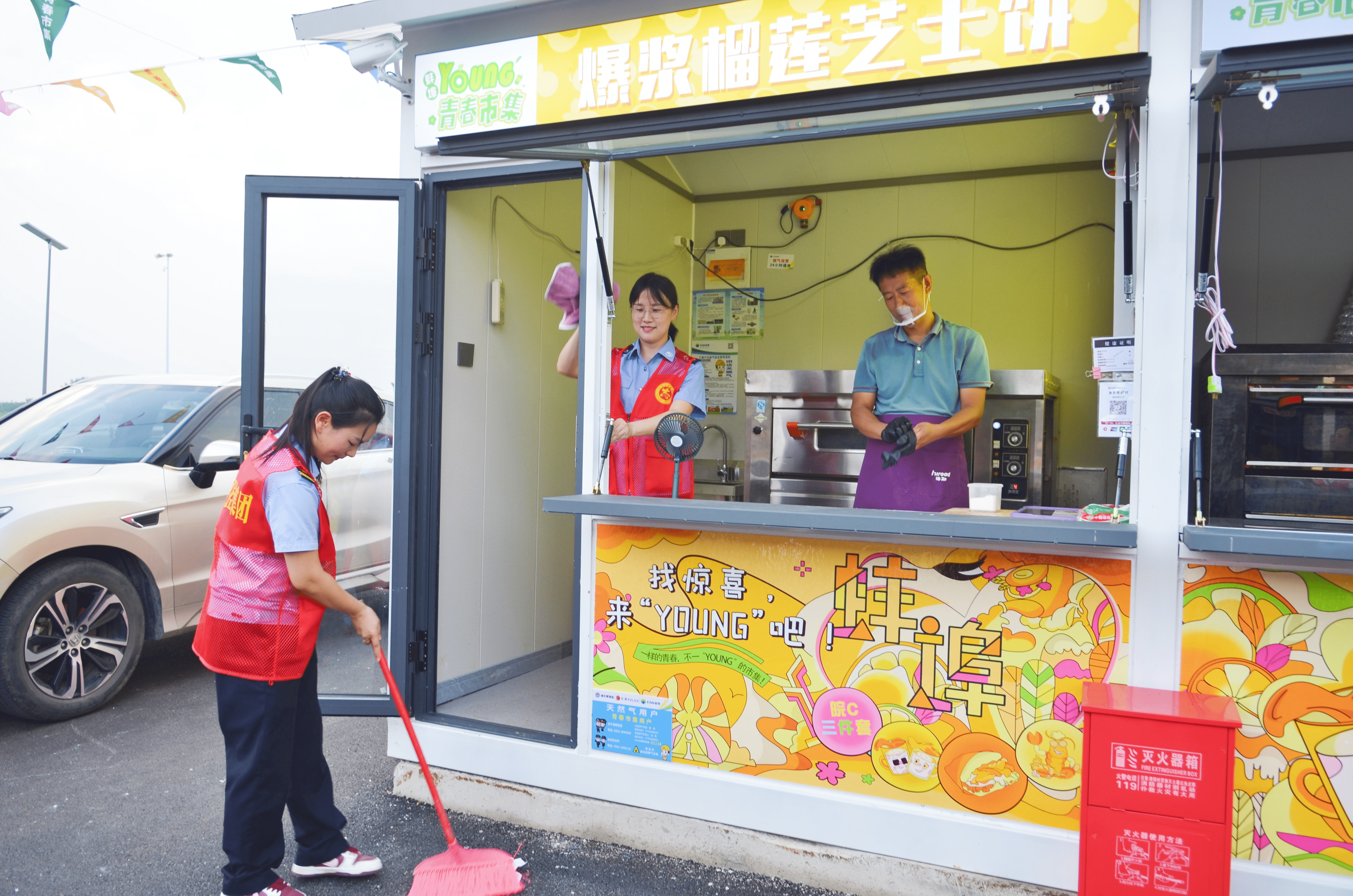 為保障龍子湖東岸青春市集順利開業(yè)運營,集團組織系統(tǒng)員工志愿者,成立了70人的服務(wù)隊伍,服務(wù)助力這一集“特色小吃、文創(chuàng)購物、體育休閑、社交服務(wù)” 于一體的公園式文旅市集精彩亮相。