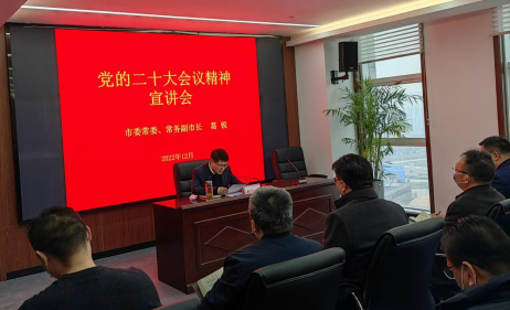 12月8日下午,蚌埠市委常委、常務(wù)副市長葛銳到集團(tuán)宣講黨的二十大精神。集團(tuán)黨委書記、董事長陳建功主持會議,集團(tuán)總部領(lǐng)導(dǎo)班子和中層管理人員,交投集團(tuán)、水投公司、城開公司、建院集團(tuán)、排水公司、糧食系統(tǒng)及汽運(yùn)集團(tuán)領(lǐng)導(dǎo)班子成員參加會議。